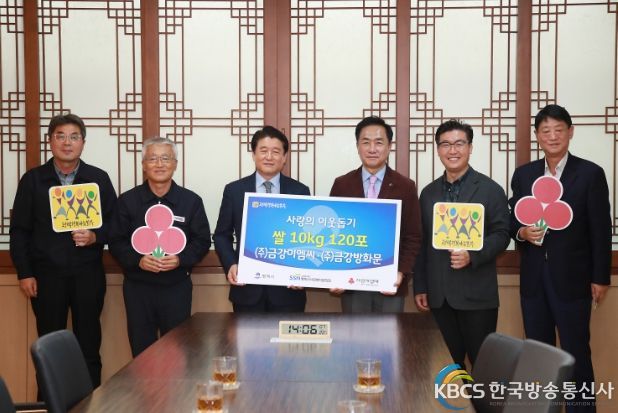 한국방송통신사 관리자 기자 | ㈜금강이엠씨·㈜금강방화문(회장 백은기)은 지난달 22일 평택시청 2층 대외협력실에서 백미(10㎏) 120포를 평택행복나눔본부에 전달했다.