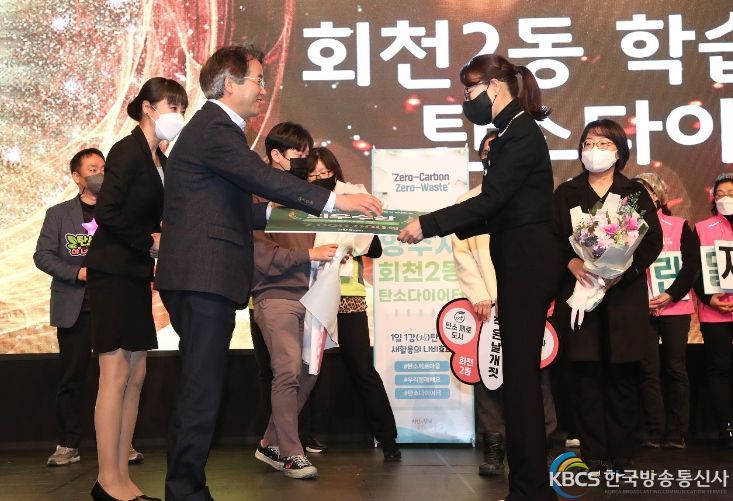 회천2동 탄소다이어터는 ‘1일 1감탄(感炭) 탄소중립 실천’이라는 주제로 환경과 사람이 함께 어우러진 지속 가능한 생활밀착형 탄소중립 실천 사업을 민관 협치로 이뤄냈다는 점을 높이 평가받아 최우수상을 수상하는 값진 결실을 이뤄냈다.