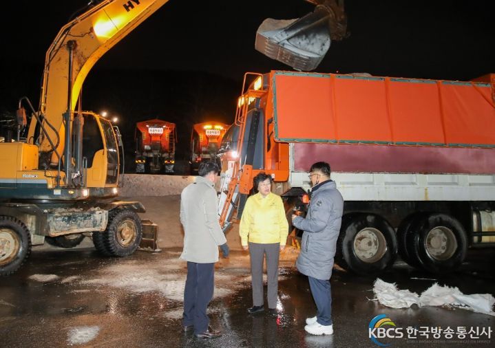 김경희 이천시장은 13일 마암리 제설전진기지를 방문해 연일 제설에 힘쓰는 공무원과 도로관리원을 격려하며 “많은 눈이 내리는 상황에서 안전한 이천시를 만들기 위하여 밤낮 구분 없이 일해주시는 여러분에게 감사하다.”고 말하며 “우리가 뿌리는 소금은 제설재 그 이상의 안전의 씨앗이니 자부심을 가지고 작업에 임해주시기 바란다.”고 당부했다.