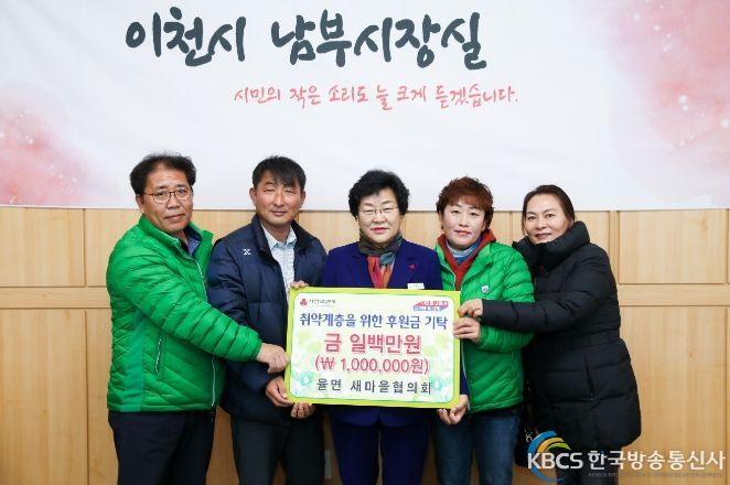 한국방송통신사 관리자 기자 | 이천시 율면 새마을협의회는 20일 이천 남부시장실에서 연말연시 저소득 취약계층을 위해 사용해 달라며 이천시와 율면“행복한 동행”에 후원금 1백만 원씩을 기탁했다.