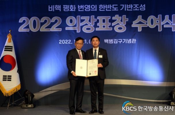 한국방송통신사 관리자 기자 | 성길용 오산시의회 의장은 21일 백범김구기념관에서 열린 민주평화통일자문회의‘2022년 의장표창 수여식’에서 의장(대통령)표창을 수상했다.
