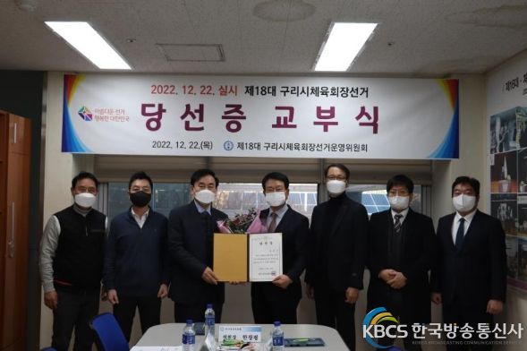 한국방송통신사 관리자 기자 | 지난 12월 22일 실시한 제18대 구리시체육회장선거에서 윤재근(윤서병원 행정원장) 후보자가 당선 결정되어 당선증을 교부 받았다.