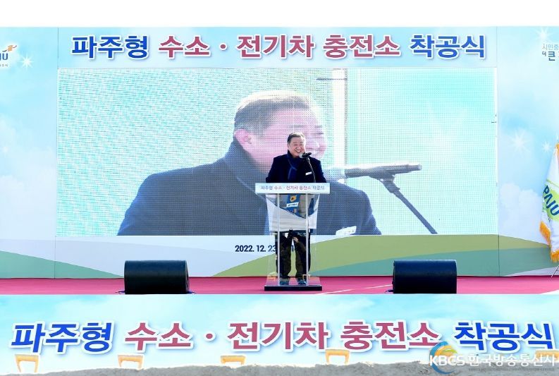 파주형 수소(전기)차량 충전소 착공식이 23일 파주읍 봉서리 829-8번지 일원(파주농협 봉서지점)에서 열렸다. 이날 행사에는 김경일 파주시장, 이성철 파주시의장, 김윤석 파주농협 조합장, 이경실 코하이젠 대표이사, 정민교 대영채비 대표이사를 포함한 주요 내·외빈이 참석했다.