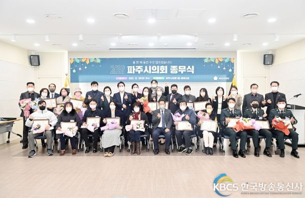한국방송통신사 관리자 기자 | 파주시의회(의장 이성철)는 30일 오후 의회 세미나실에서 종무식을 개최하고 1년간의 활동을 마무리했다. 이날 종무식에는 이성철 의장을 비롯한 의원 전원과 의회사무국 직원, 의정발전 유공표창 수상시민 등 50여 명이 참석했다.
