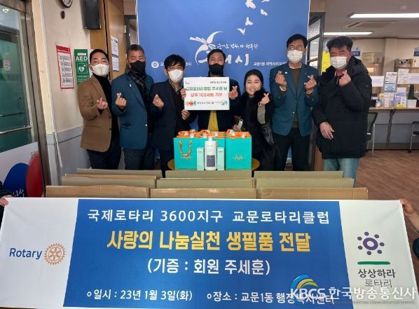 한국방송통신사 관리자 기자 | 구리시 교문1동 행정복지센터(동장 김검재)는 3일 교문로타리클럽(회장 박민철)으로부터 후원품(샴푸 100세트) 전달받았다.
