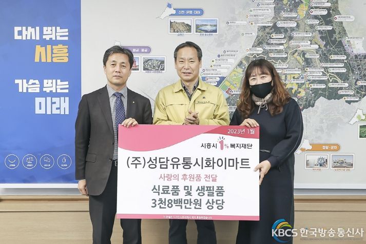 한국방송통신사 관리자 기자 | ㈜성담유통시화이마트는 지난 5일 생필품 및 식료품 등 3천8백만원 상당의 온정 나눔 물품을 시흥시1%복지재단에 기부해 지역사회를 훈훈하게 했다.