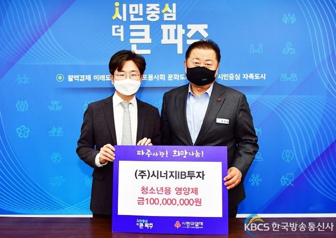 시너지IB투자(주)는 관내 저소득 청소년들이 건강하게 자라길 바라는 마음을 담아 영양제를 후원했으며, 기탁 물품은 파주시희망푸드뱅크를 통해 관내 지역아동센터 등 취약계층 아이들에게 전달될 예정이다.