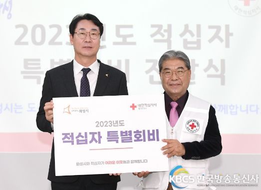 한국방송통신사 관리자 기자 | 정명근 화성시장이 13일 시청 집무실에서 대한적십자사 경기도지사에 2023년도 적십자 특별회비 2백만 원을 전달했다.