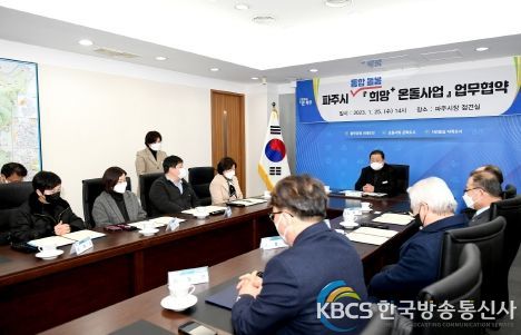 한국방송통신사 관리자 기자 | 파주시는 25일 거동이 불편한 건강 취약계층의 사회안전망 강화를 위한 대표 복지브랜드인 파주형 통합돌봄 ‘희망+ 온돌사업’ 업무협약식을 가졌다.