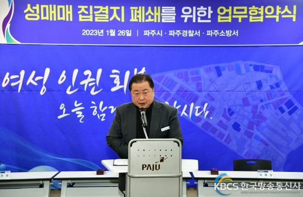 업무협약은 성매매 집결지 폐쇄를 목적으로 인권이 존중되는 여성친화도시 조성을 위해 파주시, 파주경찰서, 파주소방서 3자가 체결했다. 주요 내용으로는 ▲파주시는 성매매 피해 여성의 생계, 주거, 자활 등을 최우선으로 지원하고, 불법행위단속, 반(反)성매매 인식 확산을 위해 총력을 기울이기로 했다.