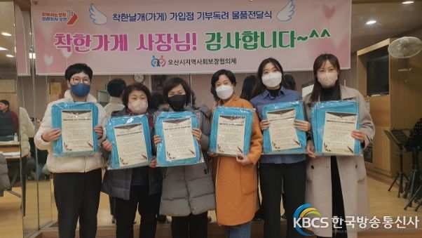 한국방송통신사 관리자 기자 | 오산시지역사회보장협의체(공동위원장 이권재, 홍선미)는 지난 31일 이웃사랑 실천을 위해 수익금의 일부를 정기적으로 기부하는‘착한날개(가게)’에 기부 감사를 위한 물품 전달식을 가졌다.