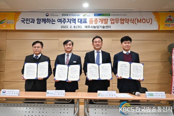 한국방송통신사 관리자 기자 | 2월 8일 여주시는 지역특화 맞춤형 벼 품종 개발을 위해 농촌진흥청 국립식량과학원, 경기도농업기술원, 농협중앙회 여주시지부와 “국민과 함께하는 여주지역 대표 품종 개발 사업” 업무협약식을 체결했다.