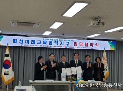 한국방송통신사 관리자 기자 | 화성오산교육지원청과 화성시는 2월 17일 학교와 지역이 함께 만들어 가는 행복한 미래교육 비전을 공유하고 이를 실현하기 위한 ‘미래교육협력지구’ 업무협약 및 부속합의서를 체결했다.