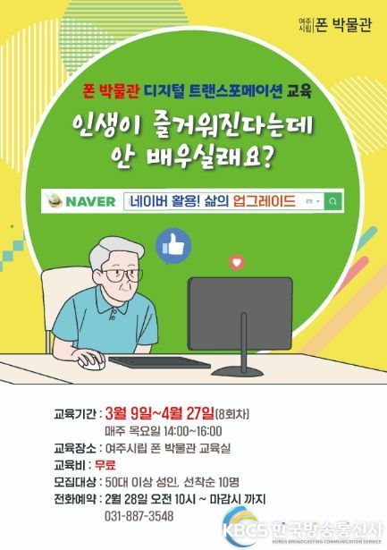 교육 신청은 2월 28일 10부터 여주시립 폰박물관의 전화접수를 통하여 예약 할 수 있으며, 2023년 3월 9일부터 4월 27일까지 매주 목요일에 진행된다.