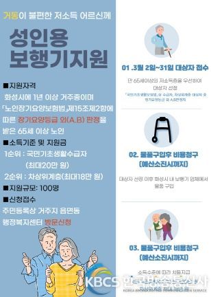 한국방송통신사 관리자 기자 | 화성시가 28일 거동이 불편한 저소득 어르신들 위해 보행기 구입비용을 지원할 방침이라고 밝혔다.
