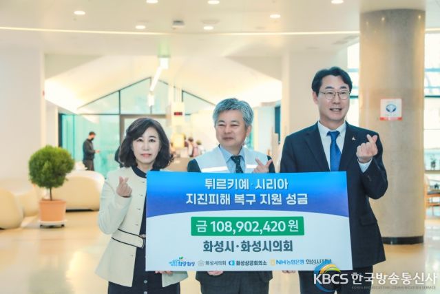 한국방송통신사 관리자 기자 | 화성시의회는 28일 화성시의회와 화성시, 화성상공회의소, NH농협은행 화성시지부, 화성시민 등이 튀르키예·시리아 지진피해 복구를 위해 모금한 1억 890만원 성금을 대한적십자회에 전달했다.