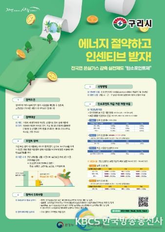 한국방송통신사 관리자 기자 | 구리시는 정부의 2050 탄소중립 실천을 위해 탄소포인트제 활성화 계획을 추진 중이며, 그의 일환으로 ‘탄소포인트제 포인트당 인센티브 지급액 확대’를 실시한다고 밝혔다.