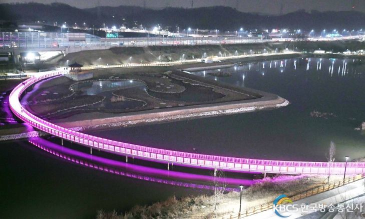 한국방송통신사 관리자 기자 | 은계호수공원의 산책데크를 화려하게 수놓는 불빛 따라 걷는 시민들의 발걸음이 즐겁다.