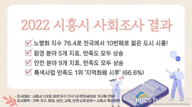 2022년 사회조사는 경기도 공통 6개 분야(가족·가구, 환경, 보건·의료, 교육, 안전, 기본)를 중심으로 시흥시 특성항목으로 진행했다.