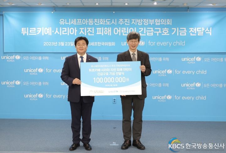 한국방송통신사 관리자 기자 | 유니세프아동친화도시 추진 지방정부협의회는 지난 23일 유니세프한국위원회를 통해 튀르키예·시리아 지진 피해 아동을 위한 긴급 구호 기금 1억원을 전달하며 희망을 전했다.