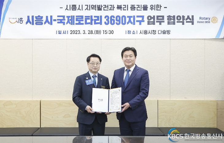 한국방송통신사 관리자 기자 | 시흥시는 지난 28일 시청 다슬방에서 국제로타리 3690지구와 함께 시흥시 발전과 복리 증진을 위한 업무 협약을 맺어 ‘K-복지도시’로 도약하는 발걸음을 내디뎠다.