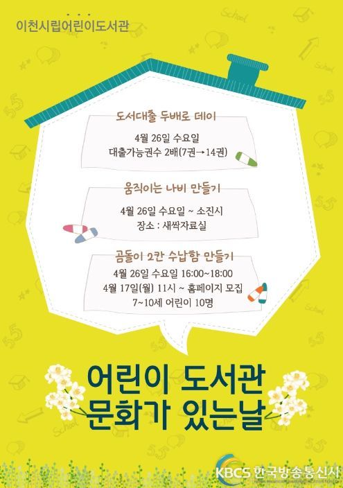 한편 이천시장은 “매달 문화가 있는 날 행사를 통해 어린이들이 다양한 문화를 향유하고 도서관에서 즐거운 시간을 보냈으면 좋겠다”라고 전했다.