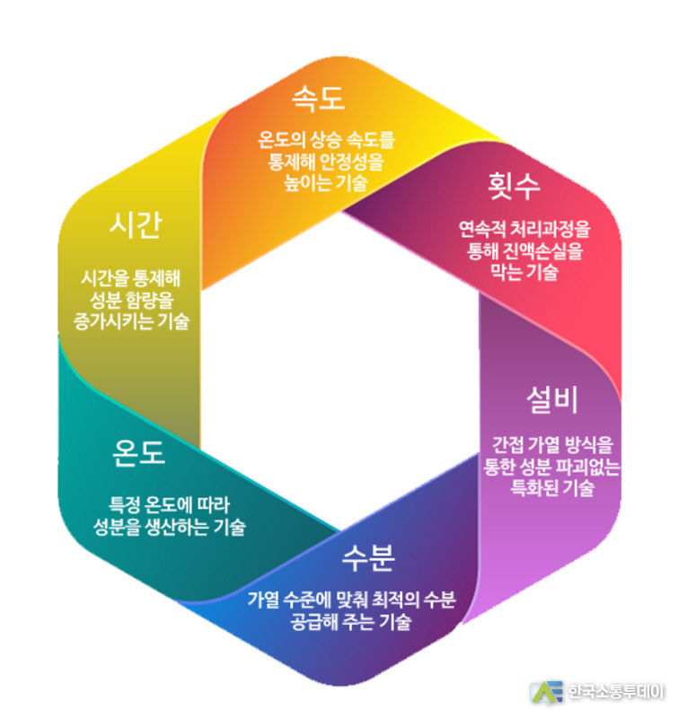 오로지 순수 한국산 6년근 홍삼과 한국 최첨단 건식나노기술의 완벽한 결합으로 지금까지 인류가 경험하지 못했던 천연물질의 살아있는 맛과 향, 영양을 파괴 없이 그대로 섭취할 수 있는 기술을 보유하게 됐다.