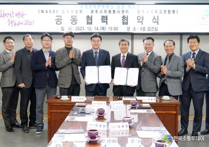 한국소통투데이 관리자 기자 | WASBE 세계관악컨퍼런스 조직위원회는 14일 광주시청 접견실에서 광주시 자원봉사센터, 광주시 기독교연합회와 제20회 WASBE 세계관악컨퍼런스 성공개최를 위한 공동협력 협약식을 개최했다.