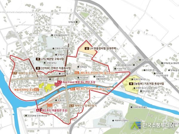 주요 사업은 레드푸드 지역 순환 경제 기반 구축 및 상권 활성화를 위한 △레드푸드 복합 Biz센터 조성 △레드푸드 어울림관 조성과 정주 여건 개선 및 주민 편의를 위한 △레드푸드 만나러 가는 길 정비 △복합 주차마당 조성 △재해 안심 장계 만들기 △레드푸드 주민 역량 강화 및 체계적인 성과관리 사업 등이다.