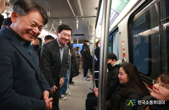 이 시장은 시청행 경전철을 타기 위해 승강장으로 이동하면서 시민들이나 경전철 운영사 직원들과 일일이 악수를 하며 새해 덕담을 나눴다.