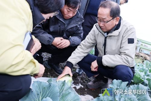 한국소통투데이 관리자 기자 | 강병삼 제주시장은 1월 25일 애월읍 소재 양배추와 브로콜리 재배현장을 방문해 대설, 한파에 따른 농작물 생육상황을 점검했다.