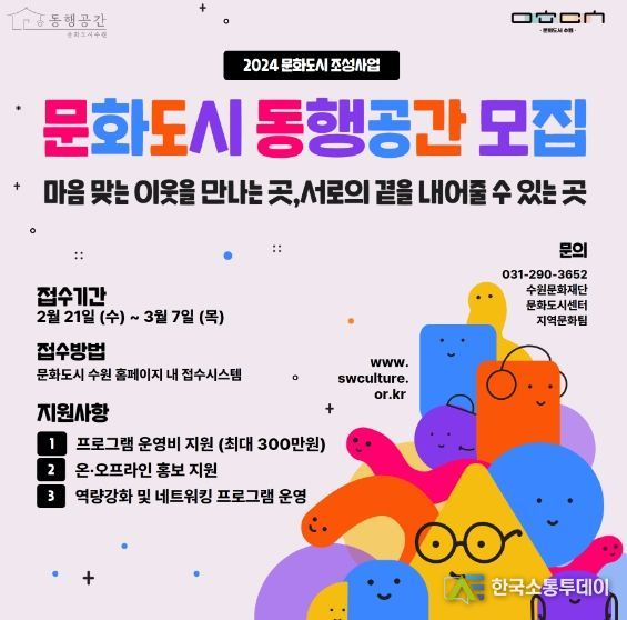 한국소통투데이 관리자 기자 | 수원문화재단은 문화예술을 매개로 지속적인 인문활동을 기획하며, 지역의 문화를 만들어 갈 16개의 ‘동행공간’을 신규 모집한다.