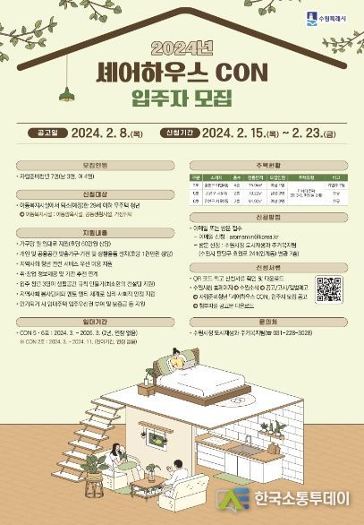 한국소통투데이 관리자 기자 | 수원시가 ‘자립준비청년 셰어하우스 CON’에 입주할 자립준비청년 7명을 2월 15일부터 23일까지 모집한다.