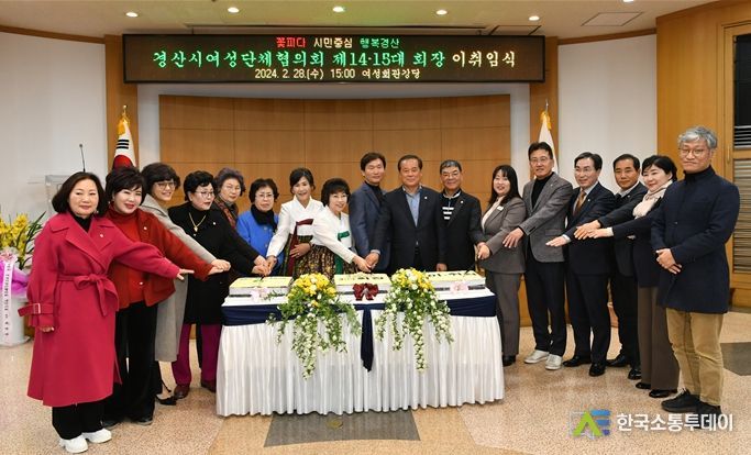 한국소통투데이 관리자 기자 | 경산시여성단체협의회(회장 이정희)는 28일 여성회관 강당에서 조현일 경산시장, 박순득 경산시의회 의장, 시‧도의원, 각급 기관 단체장을 비롯한 20개 여성 단체회원 100여 명이 참석한 가운데 경산시여성단체협의회 제14·15대 회장 이취임식을 가졌다.