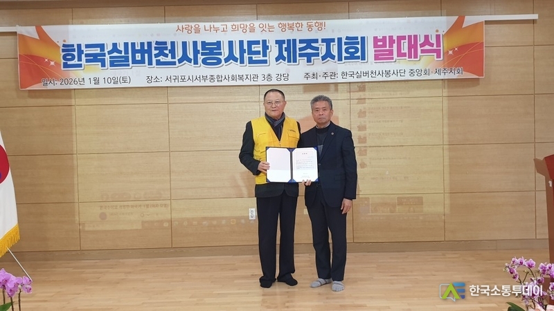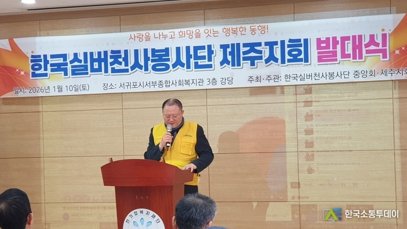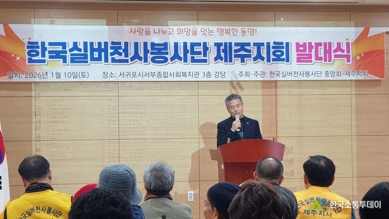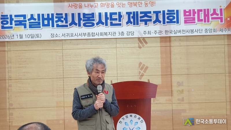지난 2026년 1월 10일 (토) 오전 11시 서귀포시서부종합사회복지관 대강당에서 한국실버천사봉사단 제주지부 발대식이 모슬포 주민 85여명과 각지부장 15명을 포함해 100여명이 참여했다.