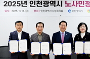 (한국소통투데이 통신사=김동현 기자) 인천광역시는 11월 14일 시청 본관 나눔회의실에서 ‘2025년 노사민정 본협의회’를 열고 지역의 협력적 노사관계 구축을 위한 다양한 안건을 논의했다. ‘인천광역시 노사민정협의회’는 노동자·사용자·시민·정부가 참여해 지역 특성을 반영한 상생 모델과 노사관계 발전 방안을 모색하는 기구다. 이날 회의에는 유정복 인천시장을 비롯해 한국노총 인천지역본부 의장, 인천경영자총협회 회장, 중부지방고용노동청장 등 주요 위원들이 참석했다. 재위촉 및 신규 위원 위촉식을 시작으로 ‘노사민정 대타협 공동선언’ 발표와 함께 노사 상생을 위한 핵심 안건 논의가 진행됐다. 인천시는 노사민정 상생협력 지원사업, 2025년 노사 상생문화 구축 실천 우수기업 선정 계획, 노동 존중 생태 기반 마련을 위한 주요 사업을 공유하며 올해 성과와 2026년 추진 방향을 설명했다. 또한 심의를 통해 제35회 인천시 산업평화대상 수상자로 기업 2곳, 노동조합 2곳, 근로자 4명, 사용자 4명을 선정해 모범적인 노사 협력 사례를 격려했다. 협의회는 ‘디지털 전환과 산업혁신 시대의 포용적 노동전환’을 목표로 한 공동선언문을 낭독하며 미래 변화에 대응하는 협력적 노사