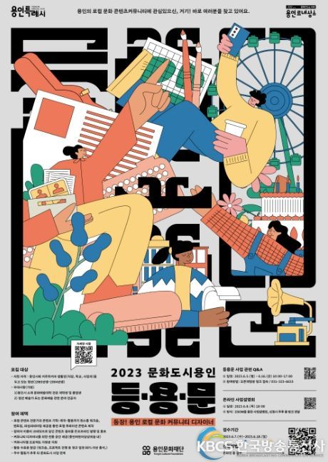 한국방송통신사 관리자 기자 | 용인문화재단은 6월 7일부터 18일까지 로컬 콘텐츠와 크리에이터 커뮤니티를 만들어갈 용인시 청년 예술가 '등.용.문-등장! 용인 로컬 문화 커뮤니티 디자이너'를 모집한다.