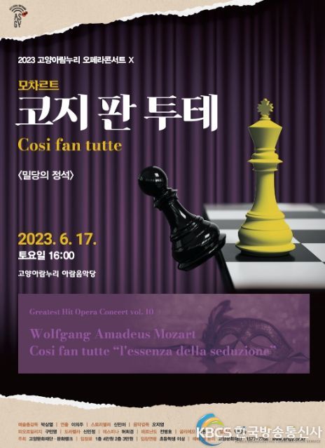 한국방송통신사 관리자 기자 | 고양문화재단은 '2023 아람누리 오페라 콘서트 시리즈' 두 번째 공연으로 모차르트 '코지 판 투테'를 오는 6월 17일(토) 오후 4시, 고양아람누리 아람음악당에서 선보인다.