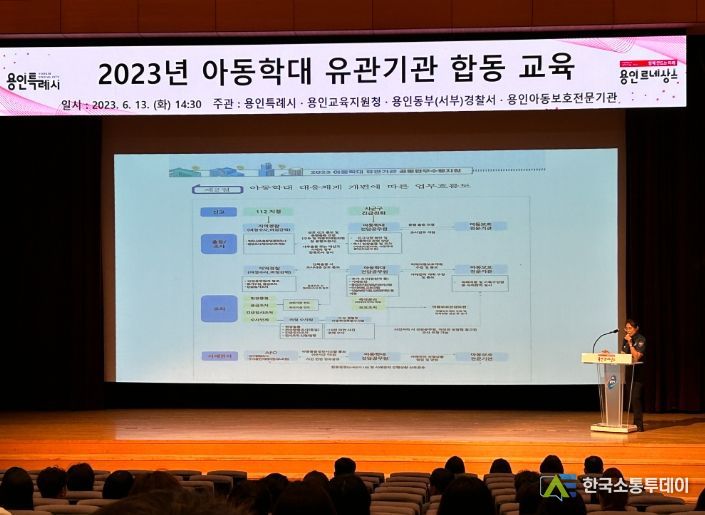 한국소통투데이 관리자 기자 | 용인특례시는 13일 용인동부경찰서, 경기용인아동보호전문기관과 협업해 유치원·초·중·고 교원 100여 명을 대상으로 아동학대 예방과 조기 발견을 위한 ‘아동학대 유관기관 합동 교육’을 실시했다고 14일 밝혔다.