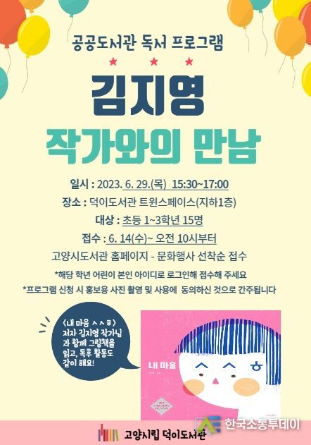 한국소통투데이 관리자 기자 | 고양특례시 덕이도서관은 오는 29일 덕이도서관 트윈스페이스에서 북큐레이션과 연계한 독서 프로그램 ‘김지영 작가와의 만남’을 실시한다고 밝혔다.