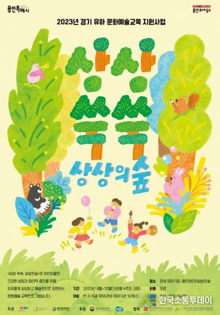 한국소통투데이 관리자 기자 | 용인문화재단은 오는 23일부터 유아 문화예술교육 프로그램인 '상상 쑥쑥, 상상의숲'에 참여할 관내 유아기관을 모집한다.