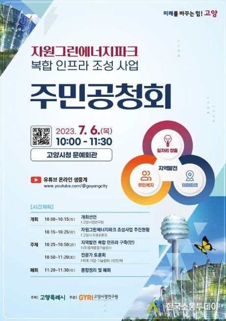 한국소통투데이 관리자 기자 | 고양특례시는 2030년 인구 114만 명을 대비한 폐기물처리시설 연계 자원그린에너지파크 조성사업에 대한 주민의견을 청취하기 위해 오는 7월 6일 고양시청 문예회관에서 공청회를 개최한다. 공청회에는 시민 300여 명이 참석할 예정이다.