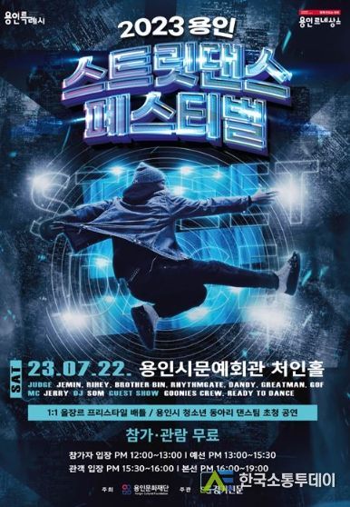 한국소통투데이 관리자 기자 | 용인문화재단은 오는 7월 22일 용인시문예회관 처인홀에서 '2023 용인 스트릿댄스 페스티벌'을 개최한다.
