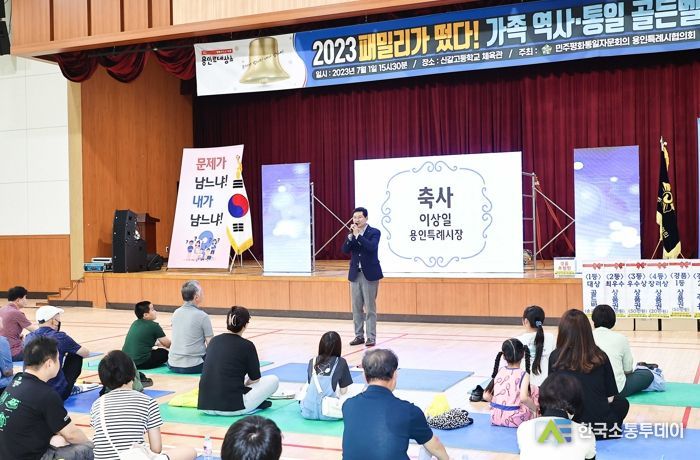 한국소통투데이 관리자 기자 | 이상일 용인특례시장이 1일 기흥구 신갈고등학교 체육관에서 열린 ‘2023 패밀리가 떴다! 용인 가족 역사·통일 골든벨대회’에 참여해 관계자와 시민들을 격려했다.