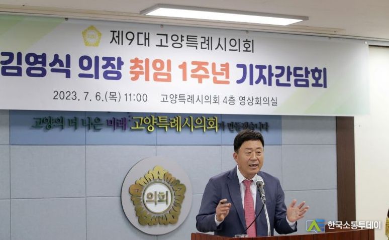한국소통투데이 관리자 기자 | 고양특례시의회는 7월 6일 의회 영상회의실에서 ‘제9대 고양특례시의회 의장 취임 1주년 기자간담회’를 갖고 그동안의 의정성과와 남은 1년 의장으로서 포부를 밝혔다.