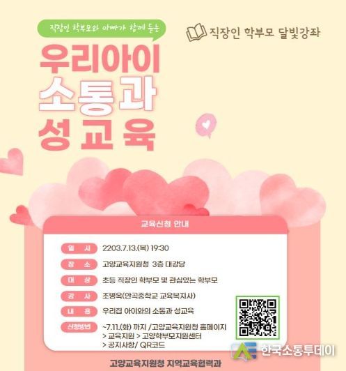 한국소통투데이 관리자 기자 | 경기도고양교육지원청은 13일 3층 대강당에서 직장인 학부모를 위한 달빛강좌를 사춘기 우리아이 소통과 성교육을 주제로 실시했다.