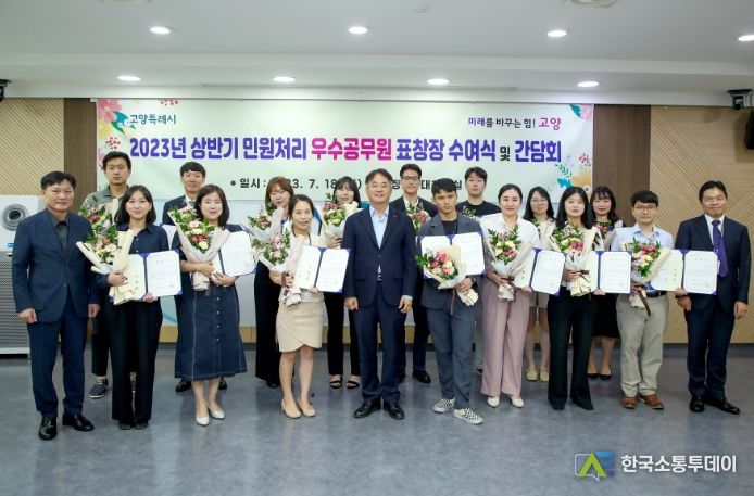 한국소통투데이 관리자 기자 | 고양특례시는 신속한 민원처리에 기여한 공직자를 격려하기 위하여 지난 18일 2023년 상반기 민원처리 우수공무원 18명을 선정해 표창했다.