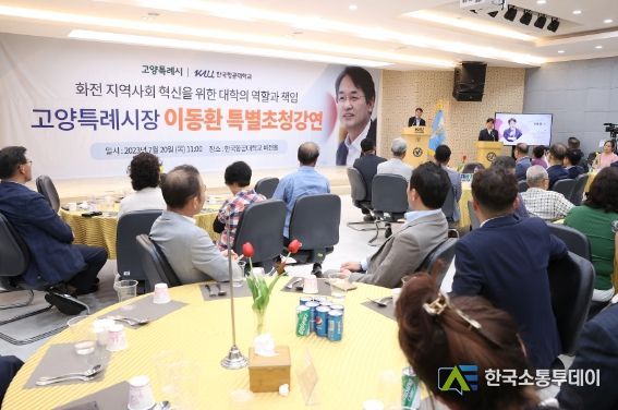 한국소통투데이 관리자 기자 | 이동환 고양특례시장이 20일 한국항공대에서 열린 ‘지역상권과 대학문화 활성화 사업 발표회’에서 ‘지역사회 혁신을 위한 대학의 역할과 책임’을 주제로 특별강연을 펼쳤다.