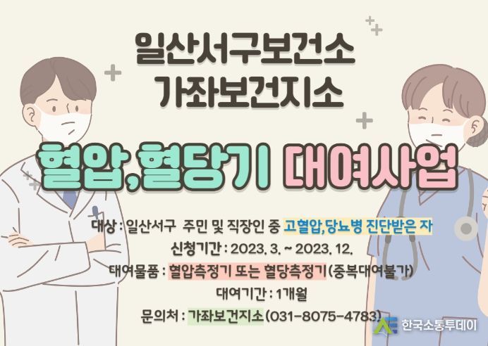 한국소통투데이 관리자 기자 | 고양특례시 일산서구보건소 가좌보건지소는 일산서구 소재 주민 및 직장인에게 혈압기기와 혈당기기를 대여해주고 있다.