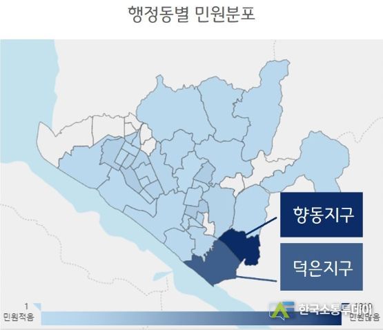 한편, 국민신문고 민원 분석 결과 덕양구 덕은지구 6, 7블록 건설 현장과 관련하여 공사 소음 및 진동 민원이 증가한 것으로 나타났다. 더불어 022C번 버스, 66번 버스, 75번 버스의 조속 운행 촉구, 075A 향동 마을버스 계속 운행 요청 등 버스 운행 요청 민원이 326건 이상 접수됐다.